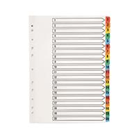 Q-Connect 1-20 Index Multi-punched Reinforced Board Multi-Colour Numbered Tabs A4 White KF01521