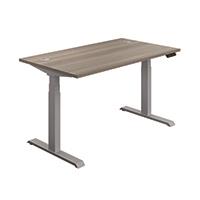 Jemini Sit/Stand Desk with Cable Ports 1200x800x630-1290mm Grey Oak/Silver KF809708