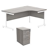 Astin Radial Right Hand SU Desk +Desk High Pedestal 1600x1200 Alaskan Grey Oak/Arctic White KF820157