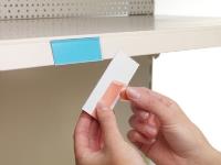 PVC, clear face with adhesive tape on back Fixes securely to shelf edge or any flat display surface Holds labels 39mm high
