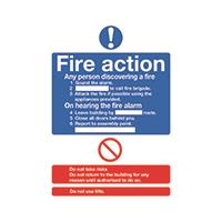 Safety Sign Fire Action Words A4 Self Adhesive FR03550S