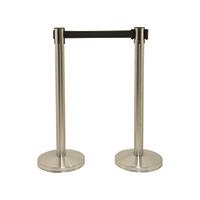 Securit Budget Barrier Pole Set with Retractable Belt Chrome/Black (Pack of 2) RS-RT-LW-CH