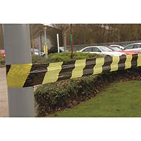 VFM Striped Tape Barrier 500m Black/Yellow (Non-adhesive suitable for indoor or outdoor use) 304927