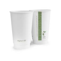The ultimate eco double wall hot cup. Fits Vegware's 89-Series lids. For coffee, tea and all hot winter drinks, or soup to go. Two layers of sustainable board with a plant-based PLA lining. Crisp white with Vegware messaging in green. Award-winning quality by Vegware, made from plants. Commercially compostable where accepted.
