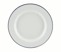 Enamel Wide Rim Plate White & Blue 26cm